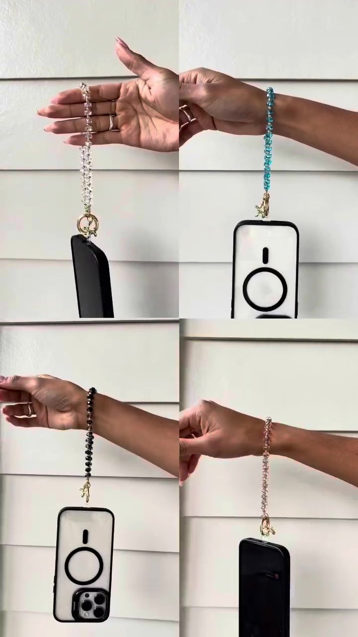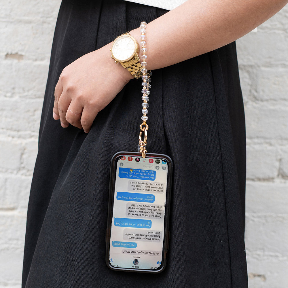 The Bedazzled Collection introduces a glamorous beaded wristlet that serves as both a fashion statement and a functional accessory. Designed to keep your phone accessible while freeing up your hands, this wristlet features shimmering beads that catch the light beautifully. It's perfect for evenings out, special occasions, or adding a bit of sparkle to your everyday look.