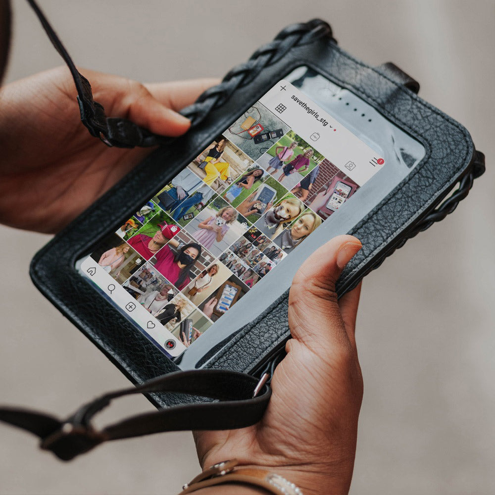 - Protective, see-through Touch Screen Phone Window allows you to make calls, answer texts, and check social media.